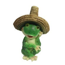 Фигура декоративная садовая Лягушка в соломенной шляпе полистоун 11х12х16,5см