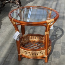 Стол журнальный, ротанг, стекло, коньяк 02/15А
