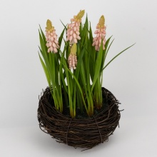 Цветок искусственный Мускари в кашпо 12х12х27см, розовый