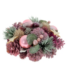 Изделие декоративное Венок Рождественский белоснежный, шишка серебро ягода 45см металл, ПВХ арт.1011