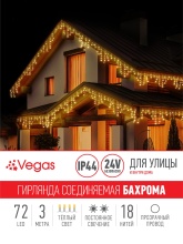 Гирлянда Вегас электрическая-конструктор Бахрома 72 холодных ламп 3м