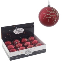 Украшение новогоднее Шар Золотая ветка, красный 1шт, 8см