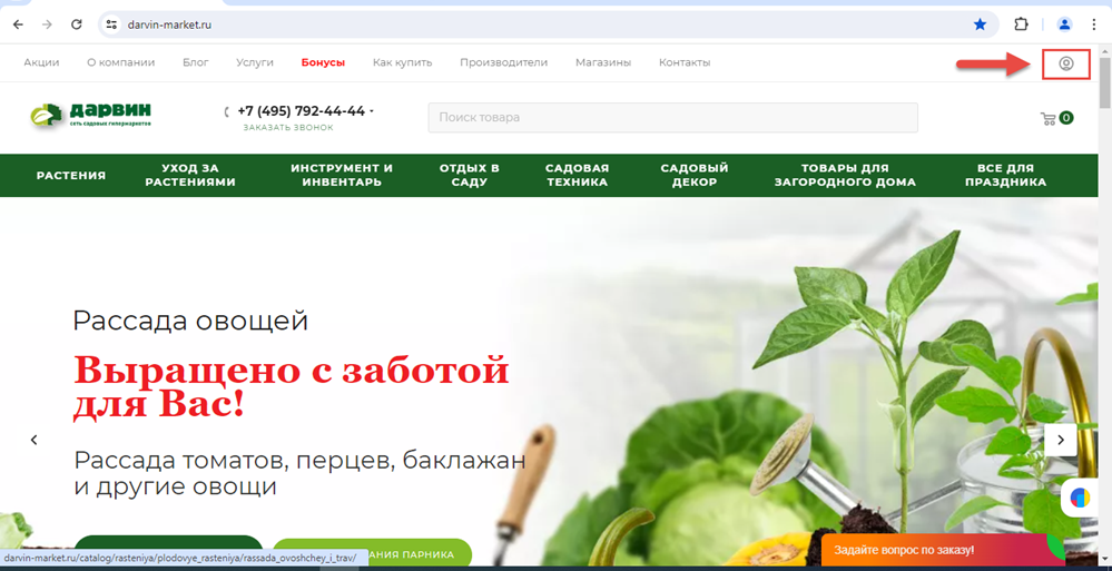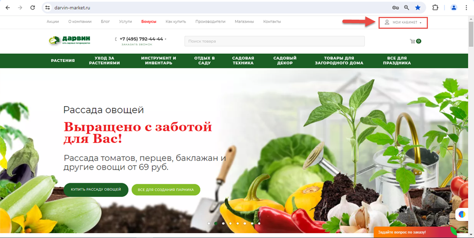 Шаг 1: Перейти на сайт интернет-магазина «Дарвин»