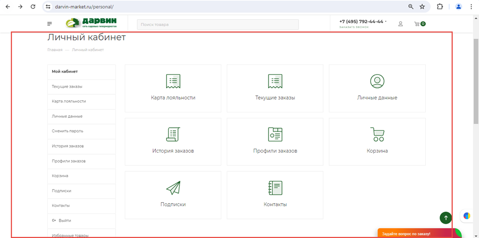 Поздравляем! Вы справились и теперь являетесь зарегистрированным клиентом на сайте интернет-магазина «Дарвин»