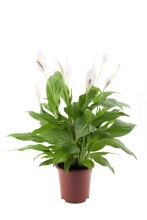 Спатифиллум (женское счастье) - классическое растение для спальни. Очищает и увлажняет воздух, выделяет кислород в ночное время, препятствует распространению плесени. Нуждается в рассеянном освещении и регулярном поливе, быстро растет. Есть сорта с разным размером листьев.